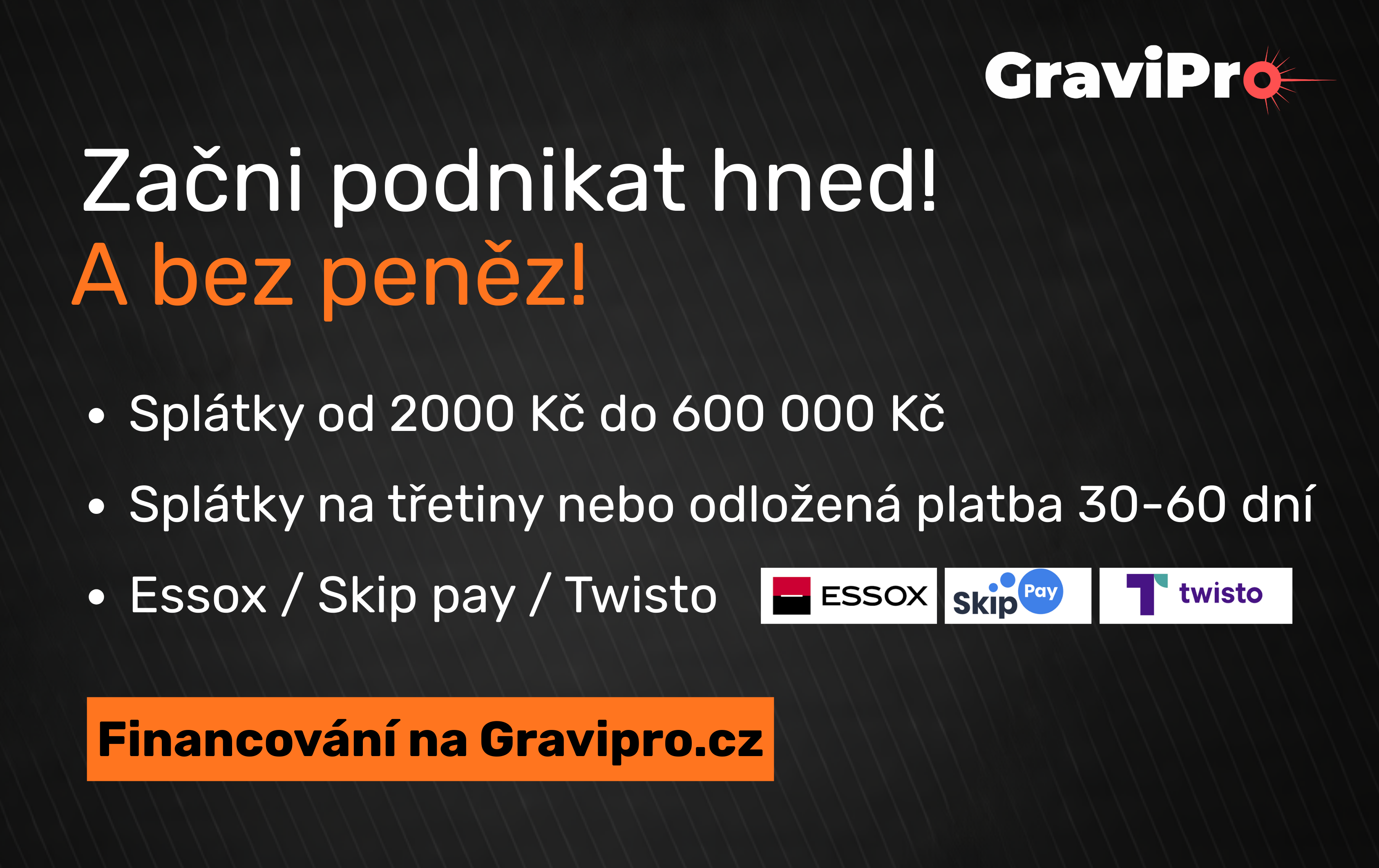 Na e-shopu GraviPro nabízíme několik moderních platebních možností, díky kterým nemusíte hradit celou částku ihned.
